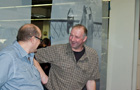 Doch was wäre ein Jubiläum unseres Clubs, wenn es nicht einen besonderen Höhepunkt gegeben hätte: Monsieur Robert Opron hat uns wieder die Ehre seines Besuches gemacht. Sein Besuch wurde schon im Vorfeld der Messe angekündigt, so dass unser Stand am Samstag von einer großen Schar treuer Opron-Fans besucht wurde. Sie brachten diverse Gegenstände, Poster und Bücher mit, die M. Opron mit seinem Autogramm versehen sollte, was ihm auch sichtlich Vergnügen bereitete. Die Krönung der zu unterschreibenden Gegenstände aber brachte ein Mitglied unseres Clubs an den Stand: Er hatte von seinem weißen GS die Kofferraumklappe abgeschraubt, um sie unterschreiben zu lassen.