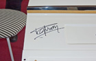 Vorher wurde natürlich ein Feld vorsichtig angeschliffen, damit die Schrift besser hält. Inzwischen ist die Klappe mit Autogramm und erneut klarlackiert wieder am GS montiert. Wunderbar!