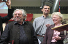 Ich selbst hatte die Ehre, seiner Gattin einen Glas-SM und eine Version der Jubiläums-DVD der laufenden Präsentation zu überreichen. Sie hat sich sehr darüber gefreut, denn wie sie sagte hat sie noch nie eine Auszeichnung oder Ehrung bekommen. Sie sage auch, sie hätten selbst einmal einen SM besessen, der aber öfter Kummer gemacht hätte. Nun, darauf konnte ich (mit übersetzer) nur erwidern, dass dieser Glas-SM auch Aufwand erfordert: er muss regelmäßig abgestaubt werden. Das fand sie dann doch nicht so schlimm.