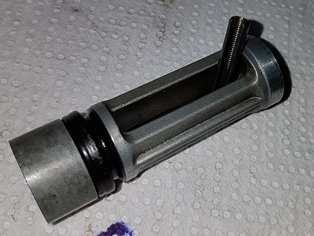 Nach dem Öffnen der Hohlschraube (26er Schlüsselweite) welche zur LHM-Nachführung dient gilt es eine Spannhülse zu extrahieren.