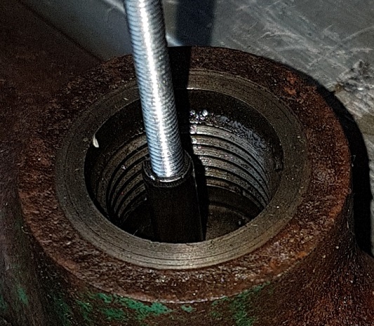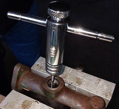 Gesagt, getan. Da die Kernlochbohrung sogar etwas größer als die 2,5er Norm war ging der Innengwindeschneider gut durch und