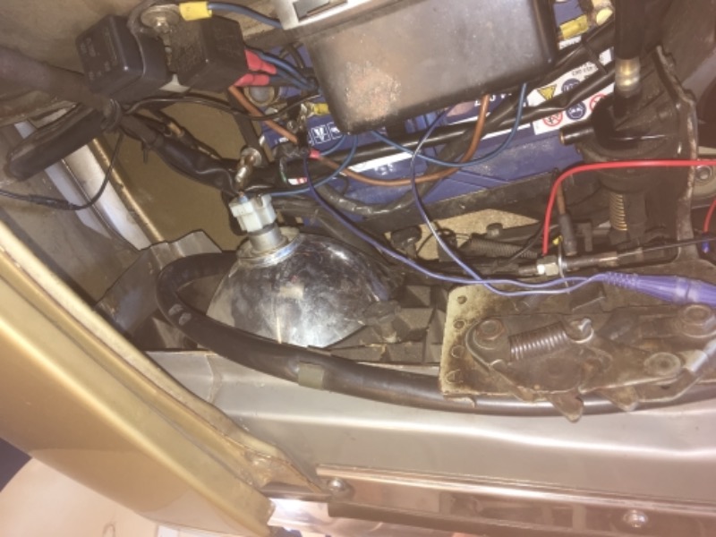 Und links auch von unten, dann hoch zwischen Relais und Hinterkante Maske und dann im Bogen mit dem Schlauchbündel zur Lenkung.