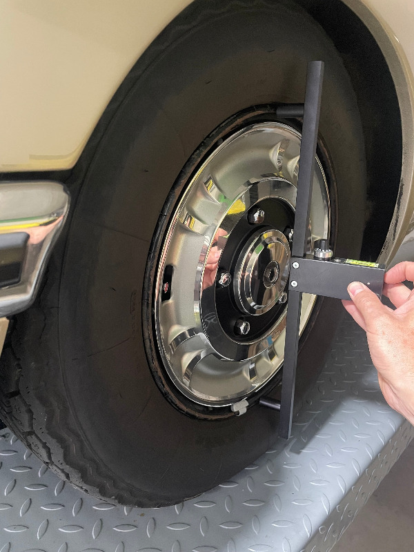 Spureinstellung mit der Trakrite Spurmessplatte. Nicht mit den 150bar Druck auf der Herzscheibe.
